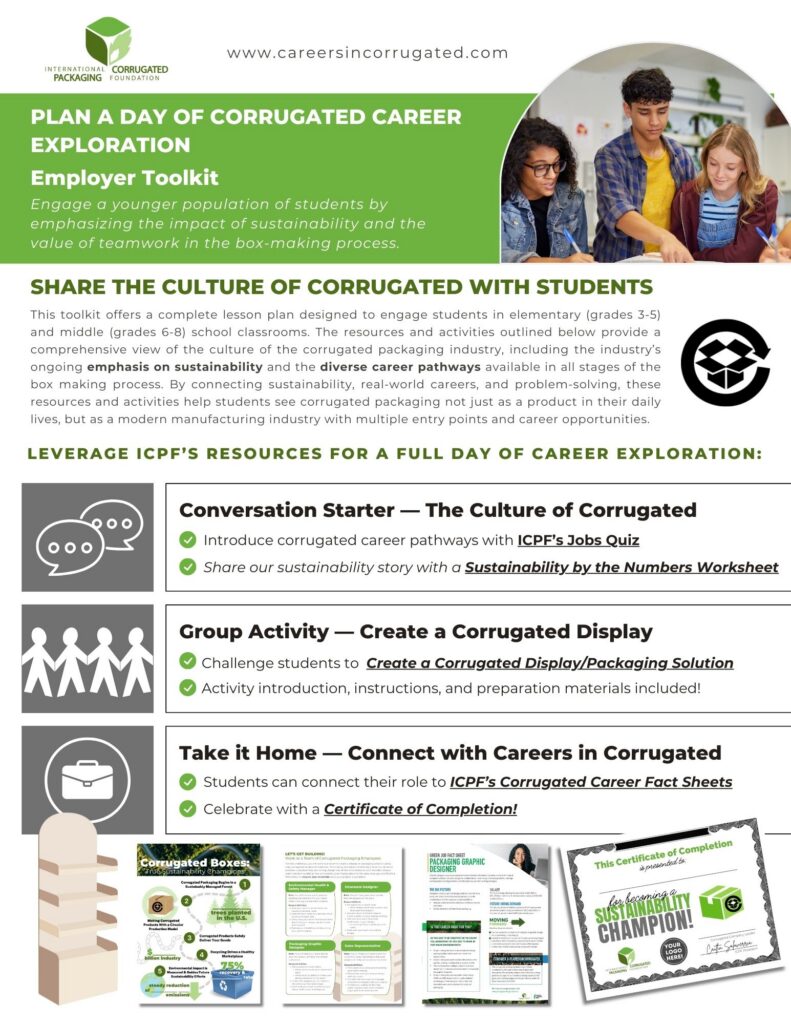 • Resources that highlight sustainability and diverse career pathways in corrugated packaging